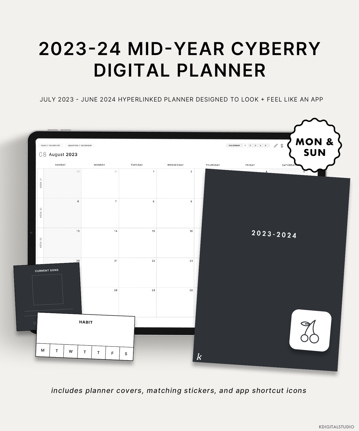 2023 2025 Cyberry Mid Year Digital Planner โ KDigitalStudio